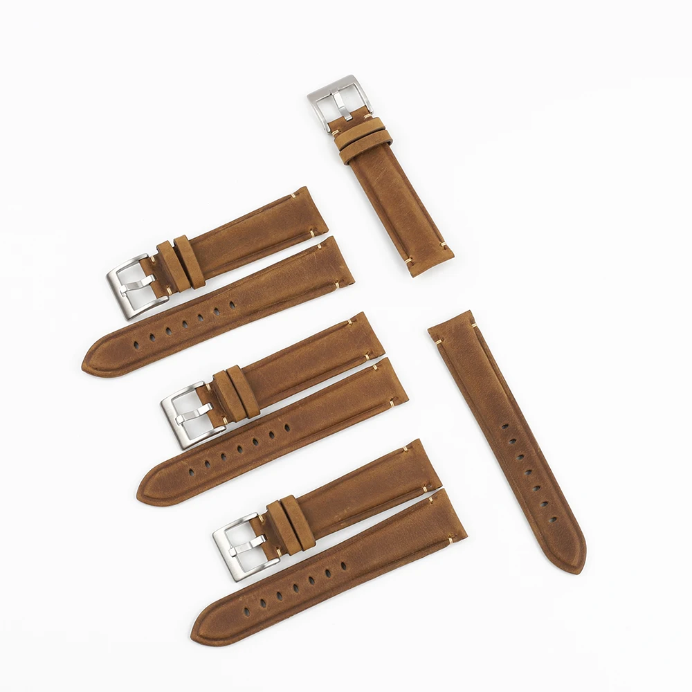 Ремешок мужской из кожи Крейзи Хорс, гладкий кожаный браслет ручной работы, цвет коричневый, 18 мм 19 мм 20 мм 22 мм 23 мм 24 мм