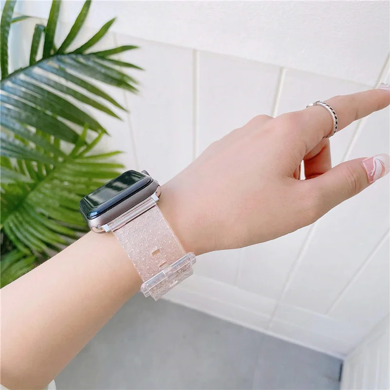 Ремешок прозрачный для Apple Watch Series 7 SE 6 5 45 мм 44 мм 42 мм 41 мм, брендовый трендовый браслет для мужских и женских часов Iwatch 3 38/40 мм