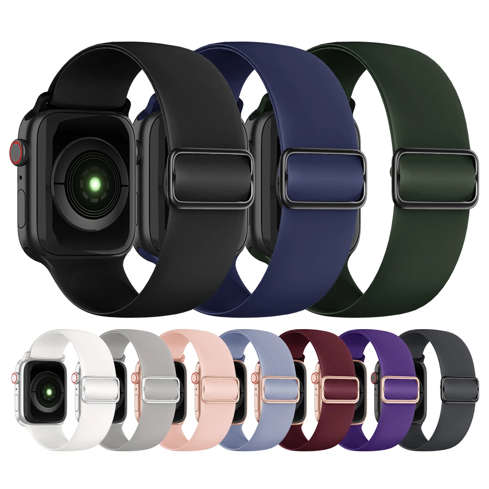 Ремешок резиновый для Apple watch band 44 мм 40 мм 38 мм 42 мм, силиконовый регулируемый соло-браслет для iWatch series 3 4 5 6 se