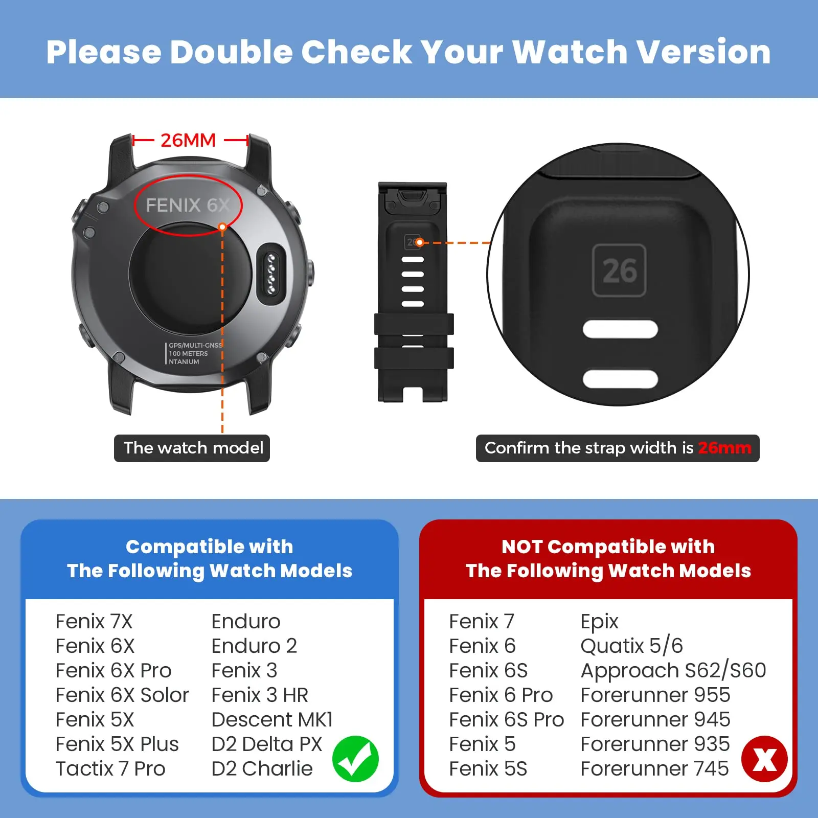 Ремешок силиконовый ДЛЯ Fenix 5X Fenix 7X, сменный спортивный браслет для часов Fenix 6X/ 6X Pro/ 5X Plus/Tactical x 7 Pro/Enduro 2, 26 мм