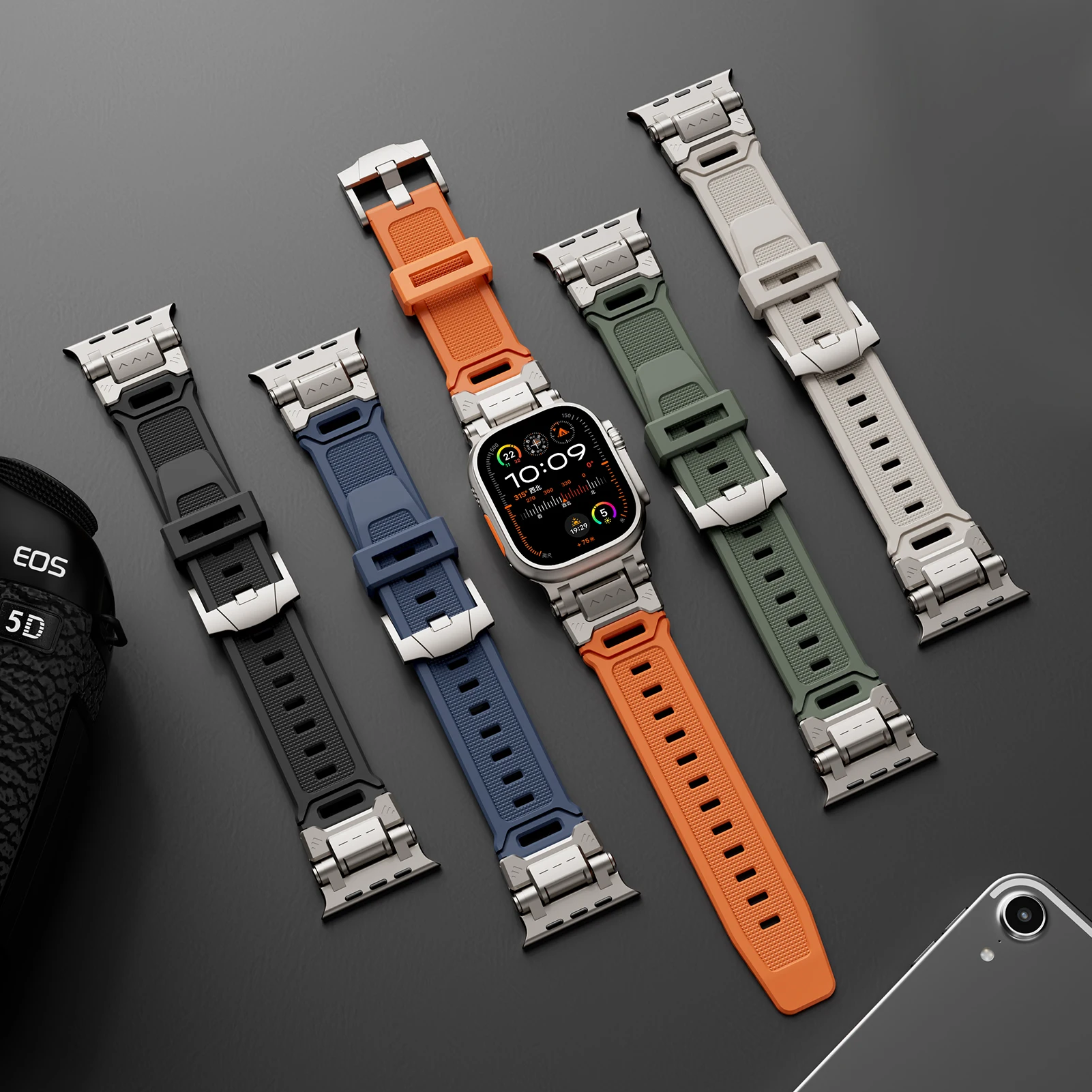Ремешок силиконовый для Apple Watch Band 44 мм 49 мм 45 мм 42 мм, прочный металлический + резиновый браслет для iWatch Series 9 6 5 3 7 8 SE Ultra 2