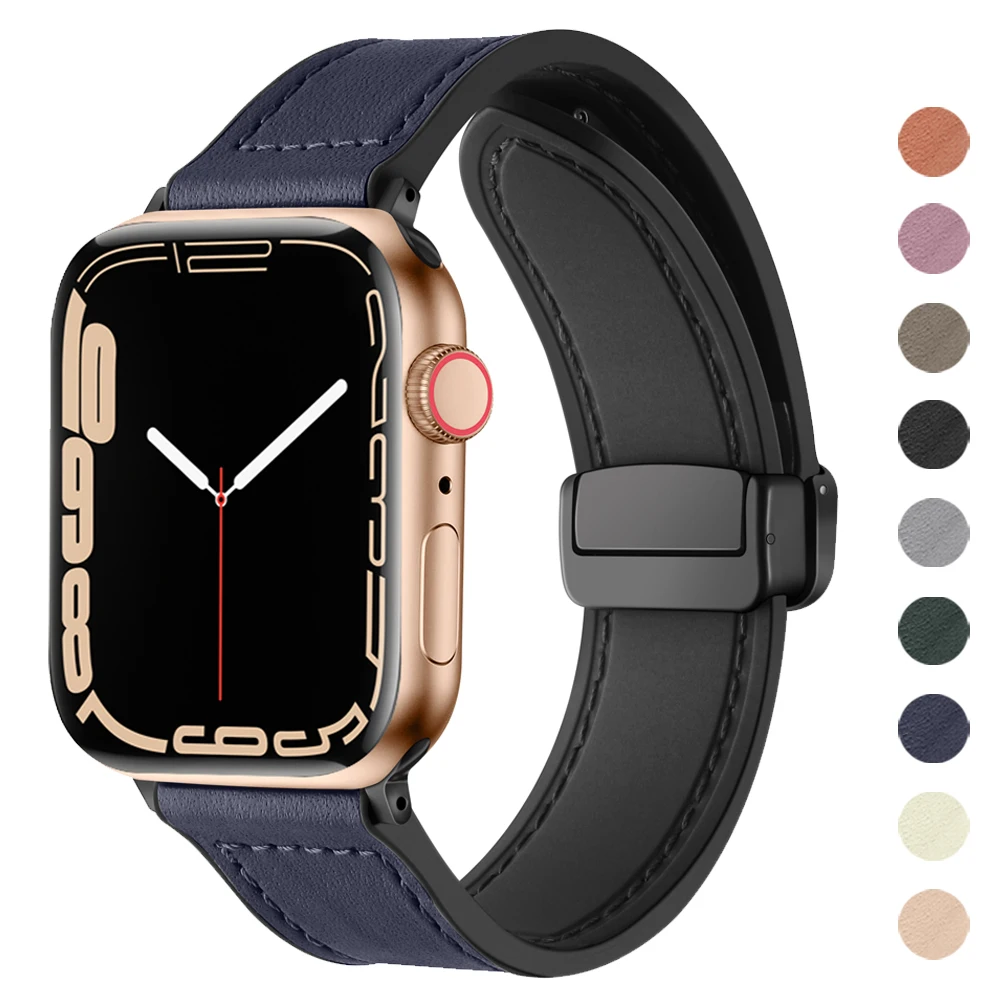 Ремешок силиконовый и кожаный для Apple watch Band 7 8 SE 6 3 44 мм 40 мм 45 мм 41 мм, браслет с магнитной застежкой для iwatch series ultra 49 мм