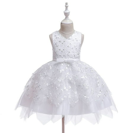 Bullpiano Toddler Baby Girls Wedding Pageant Dress Tulle Dress Sleeveless Flower Princess Sequin Party Dress Bowknot Lace Tulle Tutu Dress
