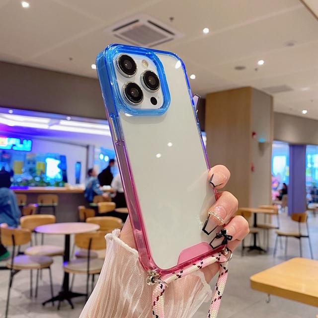 Ремешок через плечо с градиентом, прозрачный акриловый чехол для Iphone 14 13 12 11 Pro Max, мягкий чехол из ТПУ с краями и веревочным ремешком For iPhone13