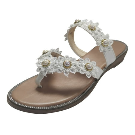 new home gifts for home Women s Wedge Sandal Slope Heel Sandals Fashion Style Casual Shoes Embroidered Beads Sandals Shoes Mesh White