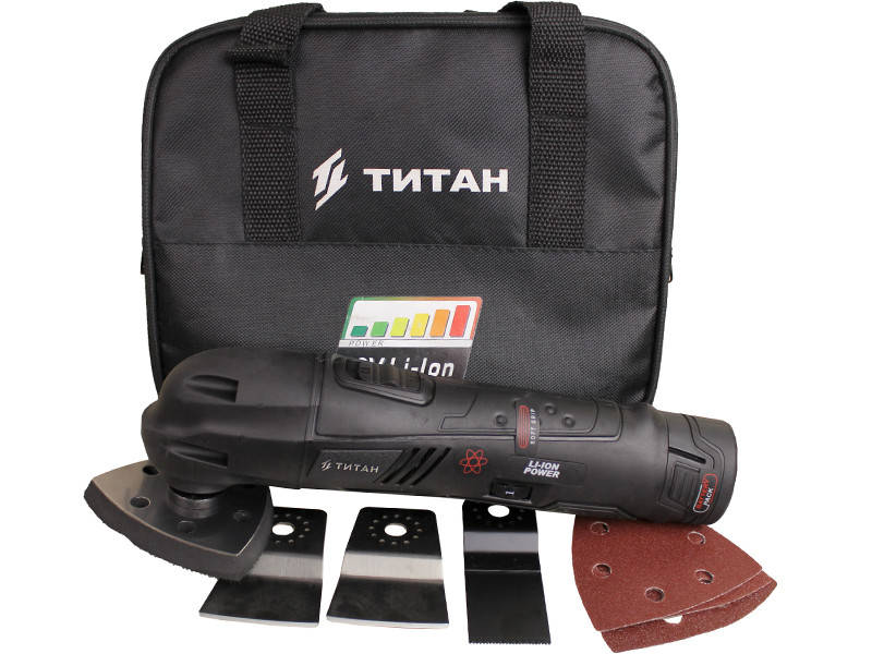 шлифовальная подошва, скребок, пильное лезвие, три шлифовальных листа, 1 аккумулятор, быстро зарядное устройство, инструкция