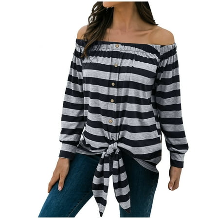 Womens One Shoulder Stripe Printing Long Sleeve Casual Top Shirts black long sleeve shirt women corset tops for women Black XL