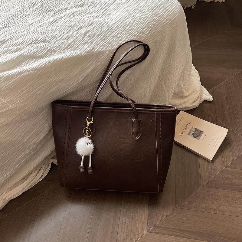 Ретро Высококлассный Стиль Сумка Большой Вместимости Женская Сумка Классная Сумка-Тоут для Поездок Простая и Модная Сумка на Плечо no pendant темно-коричневого