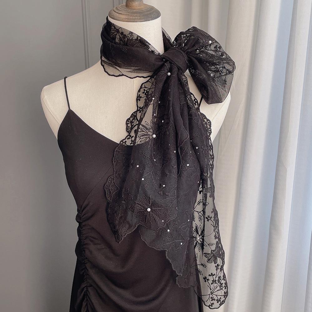Ретро Женский Кружевной Шарф Элегантный Женский Платок Повседневная Солнцезащитная Шаль для Женщин чёрный