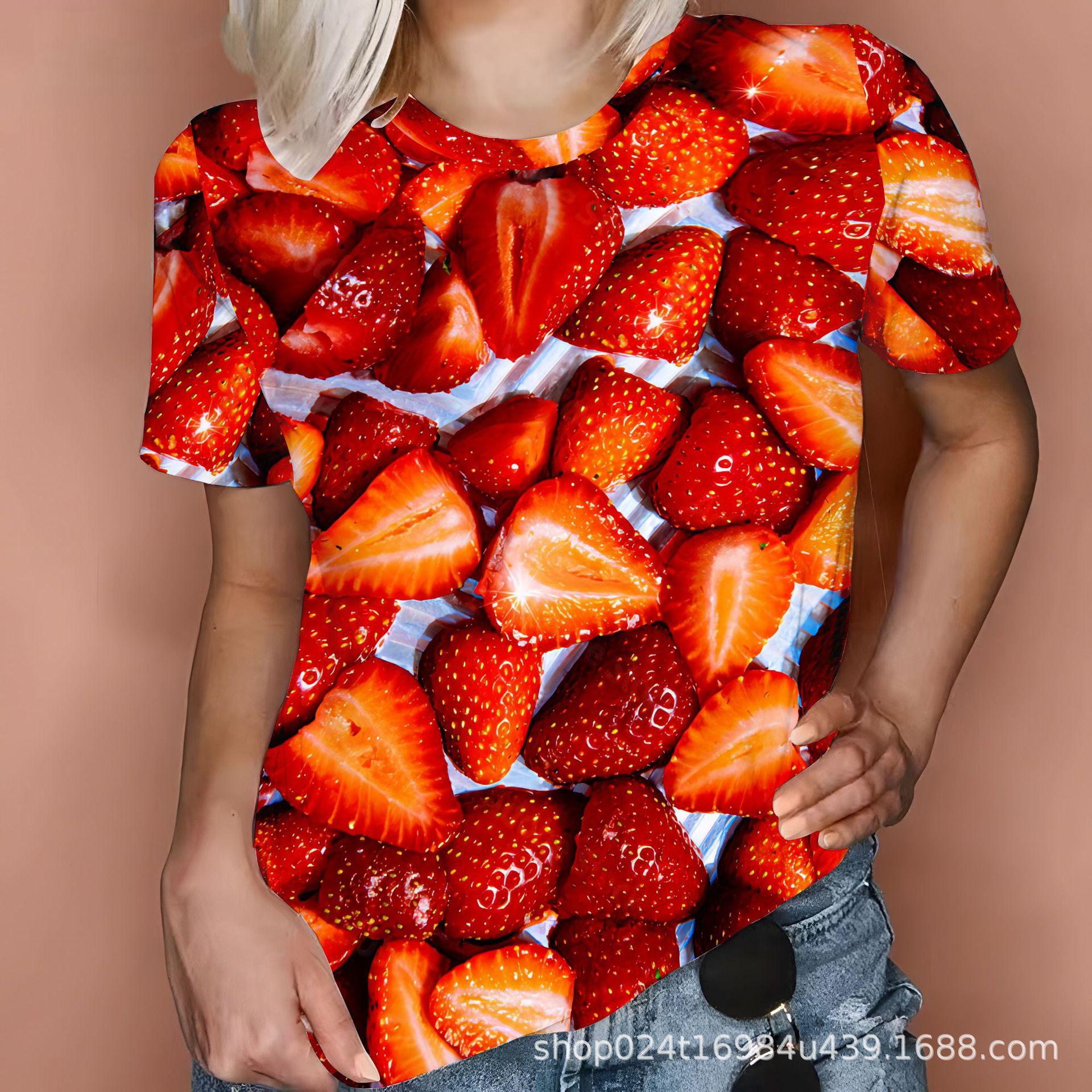 Ретро Повседневная женская футболка с принтом фруктового узора, модная, с круглым вырезом, симпатичная женская футболка с коротким рукавом 6XL