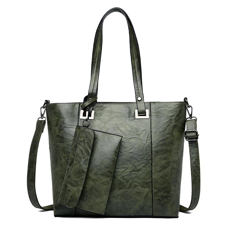 Ретро Портативная Сумка-тоут Прочная Модная Кожаная Большая Сумка Женская Сумка Через Плечо Для Покупок Офис зелёный