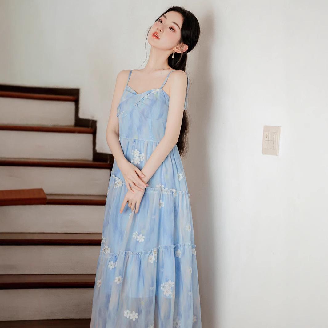 Ретро Синее Вышитое Платье-комбинация и Кардиган Small