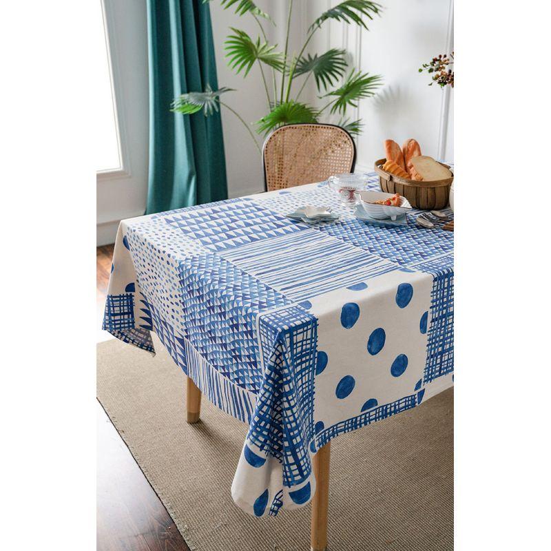 Ретро Синяя Скатерть Этнический Стиль Юго-Восточной Азии Геометрия Прямоугольник Ткани Скатерть круглая Стол Кофейный Столик Скатерть Покрывало Ткань Sky Blue Puzzle Long 100 * wide 140cm