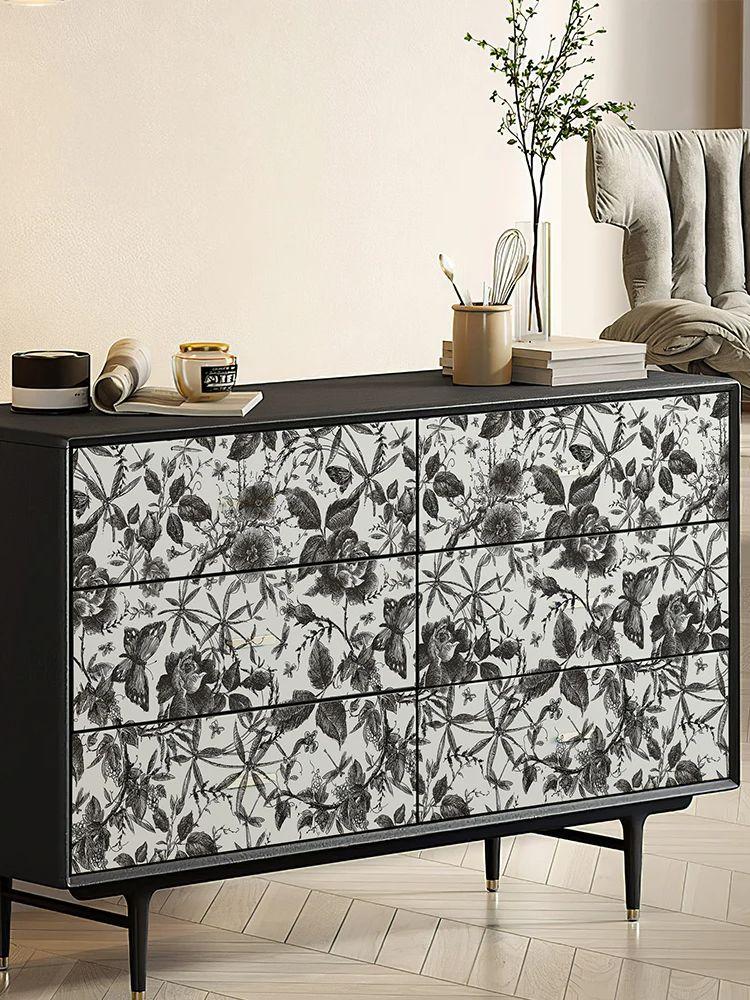 Ретро Темные Цветочные Обои во Французском Стиле Самоклеящиеся ПВХ Черные Цветы Декор для Стен Водонепроницаемая Винтажная Наклейка для Мебели Шкафа 40cmx150cm