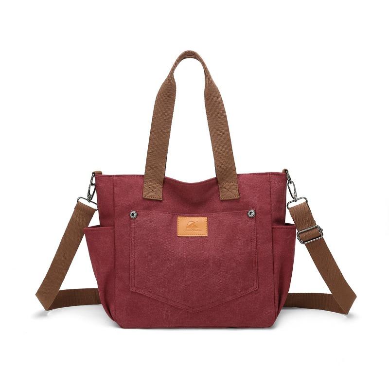Ретро Утолщенная Холщовая Сумка с Множеством Карманов Повседневная и Простая Ручная Сумка-Тоут через Плечо фиолетовый