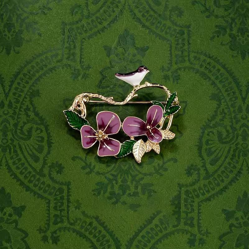 Ретро-брошь в виде цветочной ветки с птицей, высококачественная женская нежная брошь в виде ириса с птицей, нишевый дизайн, булавка, аксессуары для одежды