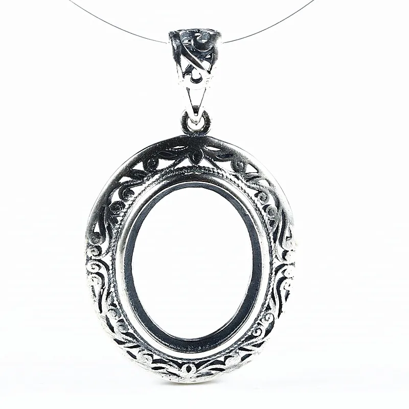 Ретро винтажная филигранная искусственная Серебряная Женская подвеска 12x15 мм овальный кабошон с полукреплением изящные ювелирные изделия