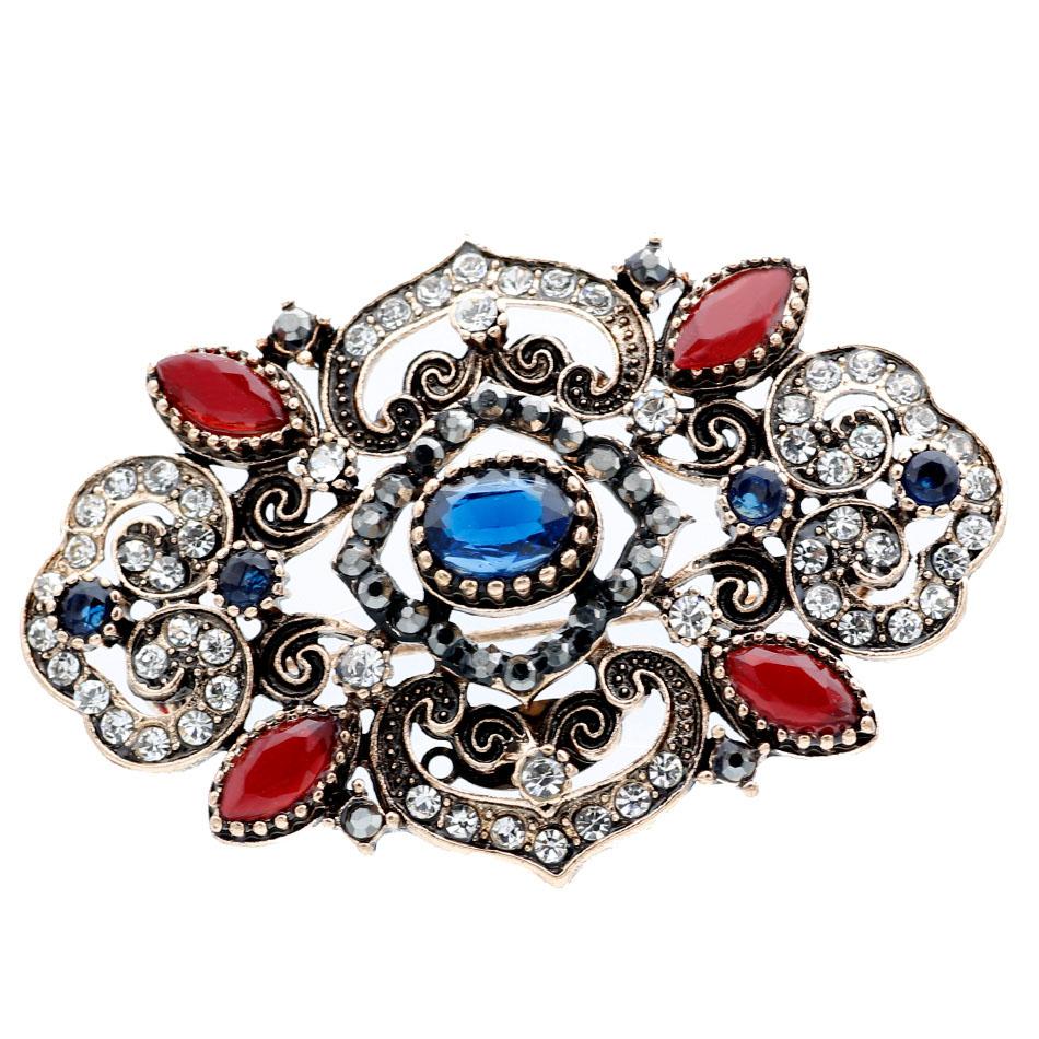 Ретро женская брошь с цветком, игла, серые кристаллы, ювелирные изделия, брошь со стразами, брошь с отворотом, оптовая продажа синий