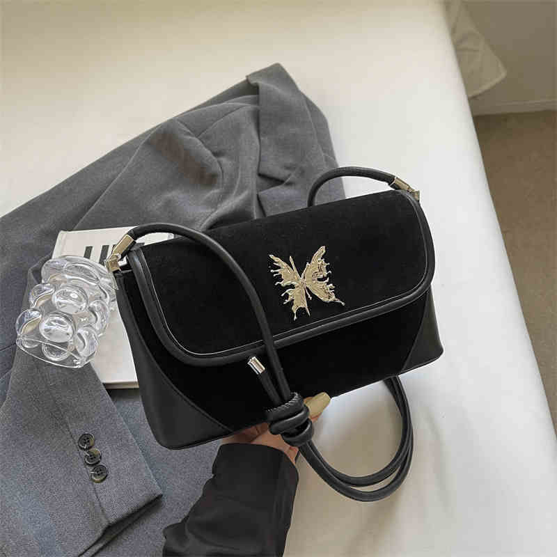 Ретро женская сумка через плечо осень-зима бархатные универсальные сумки через плечо темперамент 3D металлическая бабочка сумка на одно плечо