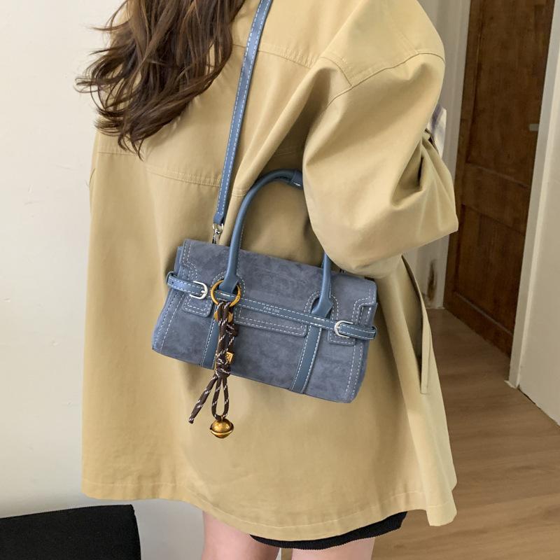 Ретро замшевая маленькая сумка женская 2025 новая модная универсальная сумка-мессенджер изысканная супер огонь портативная маленькая квадратная сумка синий