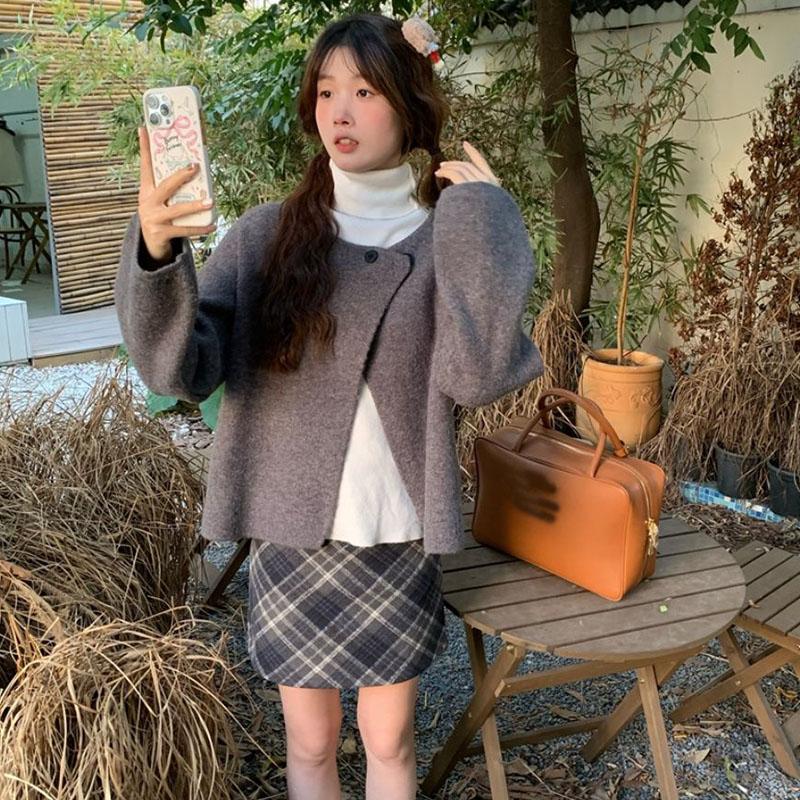Ретро кардиган с круглым вырезом для женщин на весну и осень, новый свободный многослойный красный вязаный свитер, куртка для женщин one size серый