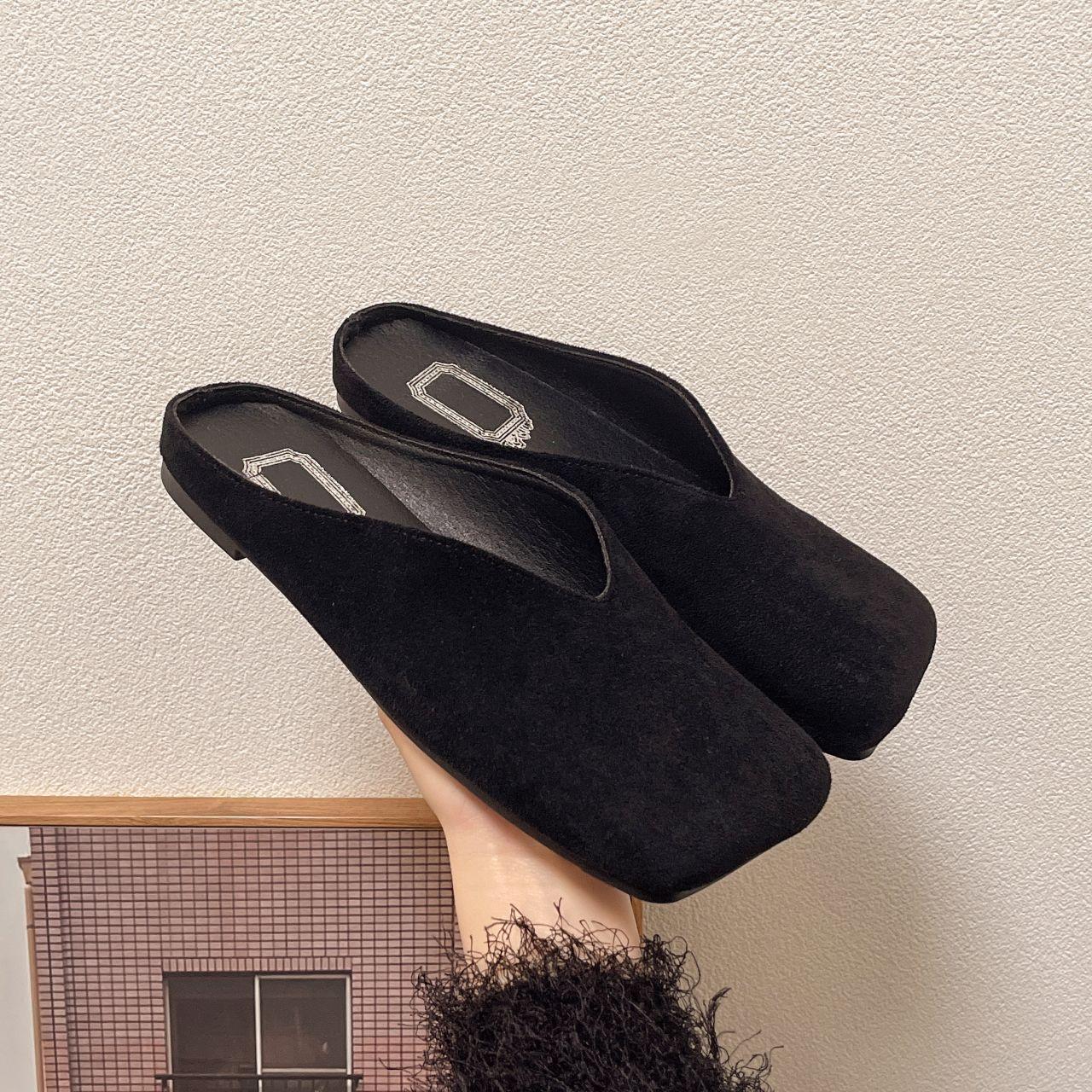 Ретро квадратный носок полушлепанцы женские новые весенне-летние замшевые с сумкой на носке мягкая подошва плоский каблук шлепанцы туфли на плоском каблуке обувь большого размера 35 чёрный