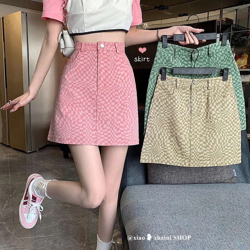 Ретро клетчатая юбка, Новинка лета 2022, облегающая юбка А-силуэта в клетку с высокой талией, облегающая короткая юбка, индивидуальная клетчатая юбка