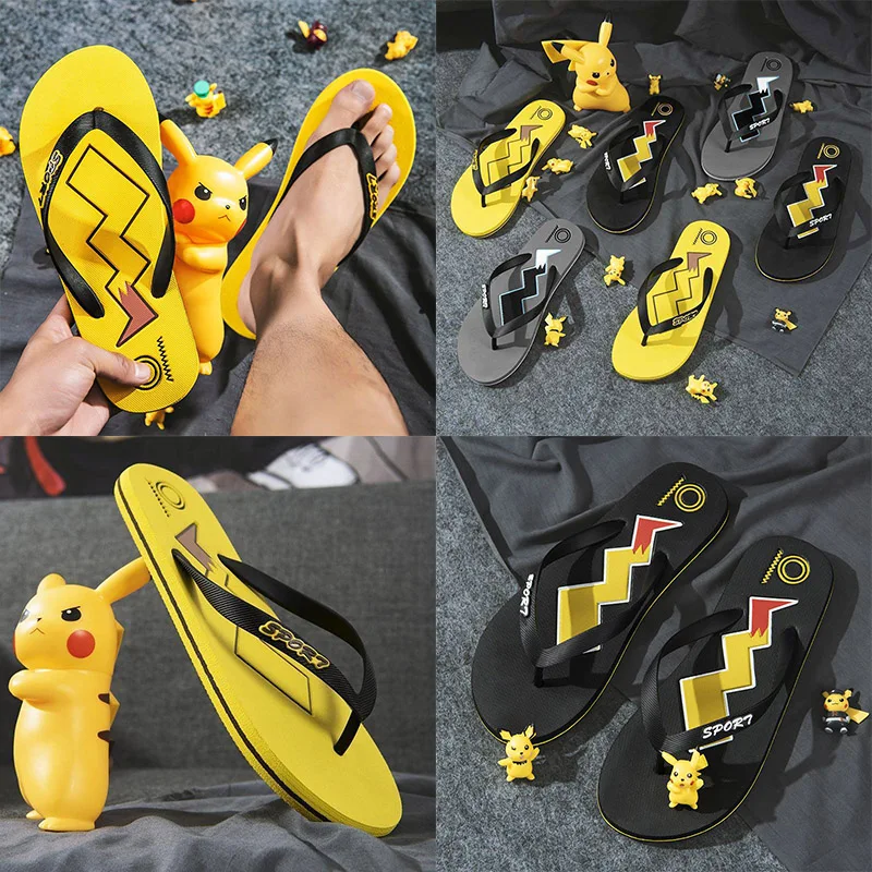 Pikachu Summer Slippers Anime Fashion Trend Boys Girls Home Anti Slip Odor Clip on Sandals Cute Cartoon Wearing Beach Shoes