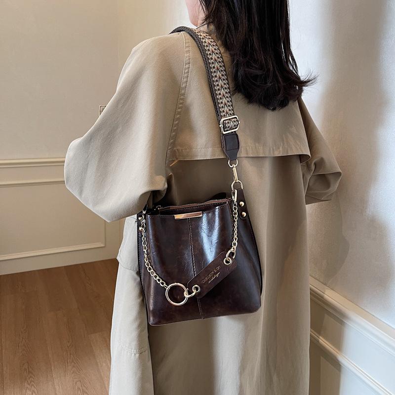 Ретро мода простая портативная сумка-ведро из масляной вощеной кожи, трендовая универсальная нишевая дизайнерская сумка через плечо, мессенджер, женская 21*12*20 темно-коричневого
