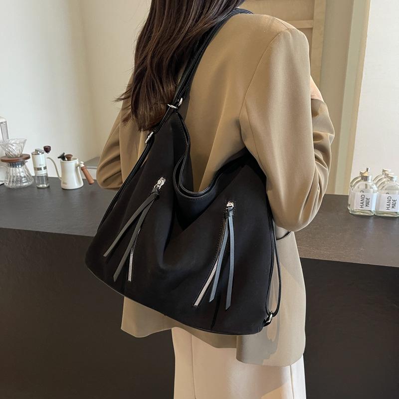 Ретро модная женская сумка-тоут 2024 года, новый рюкзак большой вместимости для поездок на работу, простая высококачественная сумка через плечо чёрный