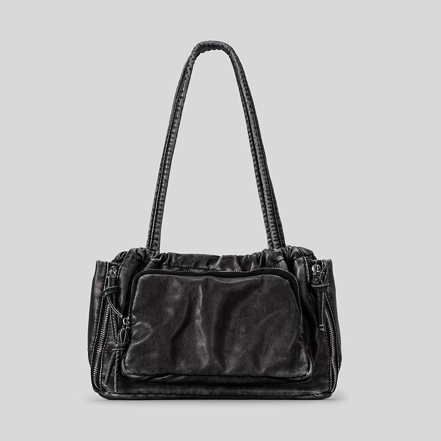 Ретро мотоциклетная сумка универсальная плиссированная одноплечевая сумка под руку женская сумочка серый/чёрный