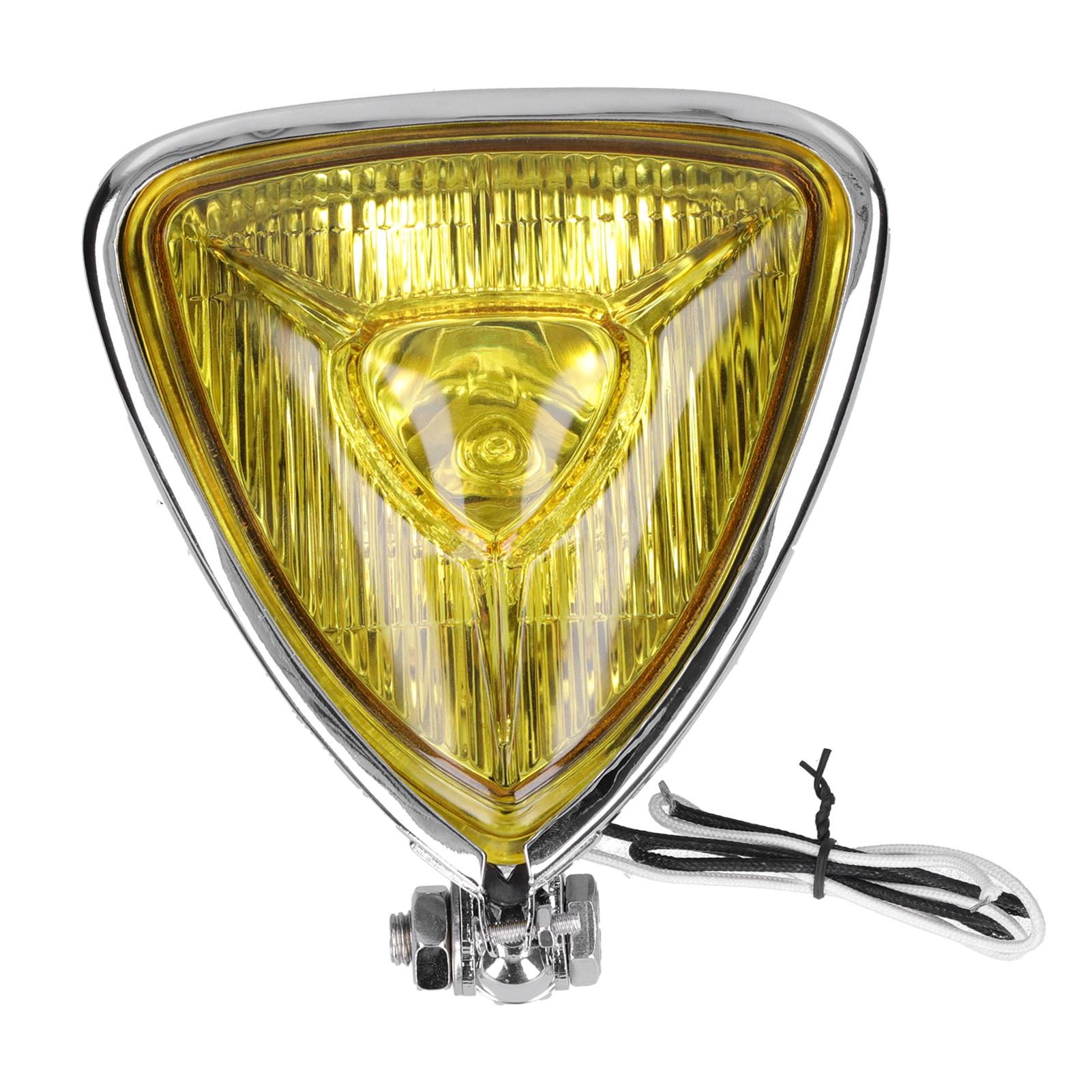 Ретро мотоциклетная фара треугольная передняя лампа желтая линза 12 В 55 Вт резьба M10 для винтажной модели