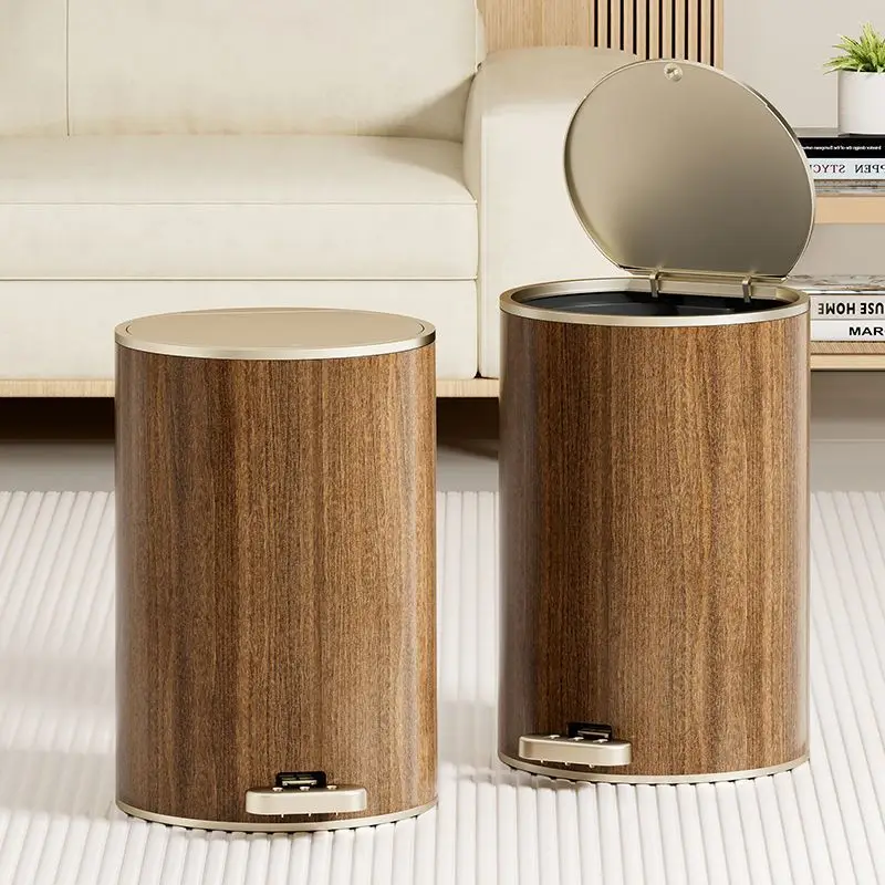 Ретро мусорная корзина с древесным зерном, большая емкость, бесшумная корзина для переработки, кухонный мусорный бак с крышкой для хранения, пресс для ног, двойной открытый мусорный бак