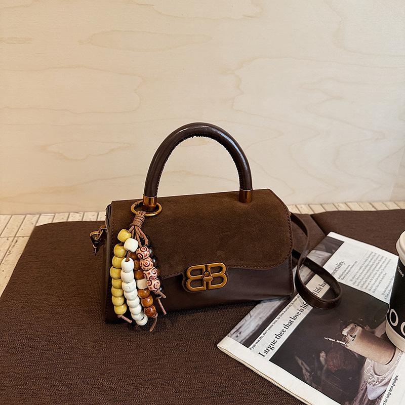 Ретро премиум матовая маленькая квадратная сумка 2025 осень и зима новая сумка с замком сумка на одно плечо кроссбоди женская сумка сумка для поездок Single bag + pendant