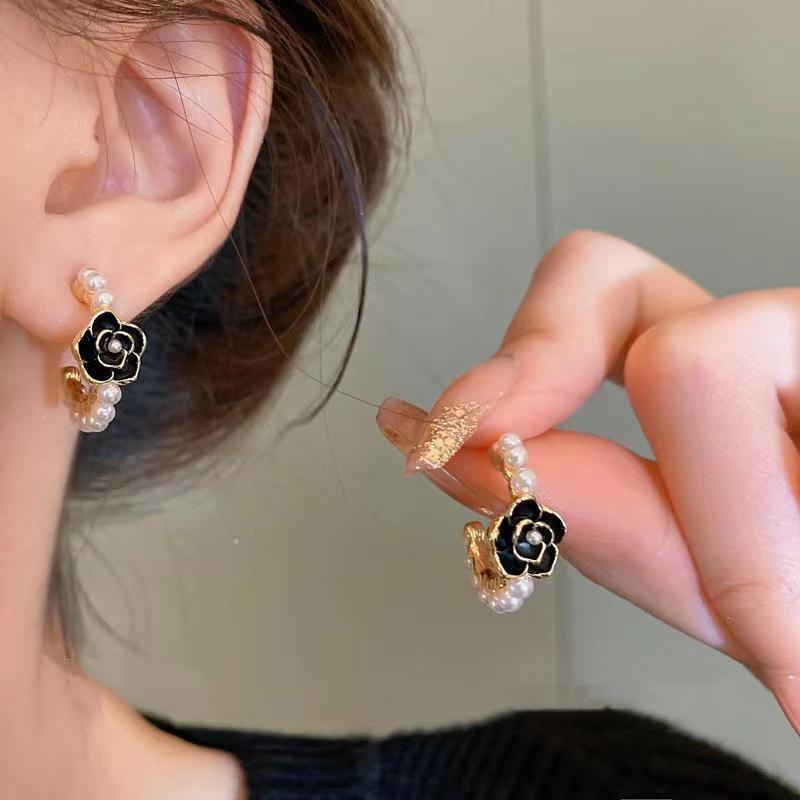 Ретро серьги-камелии с камелией, женские жемчужные, белые, черные эмалированные серьги с масляными цветами, вечерние элегантные ювелирные изделия для девочек
