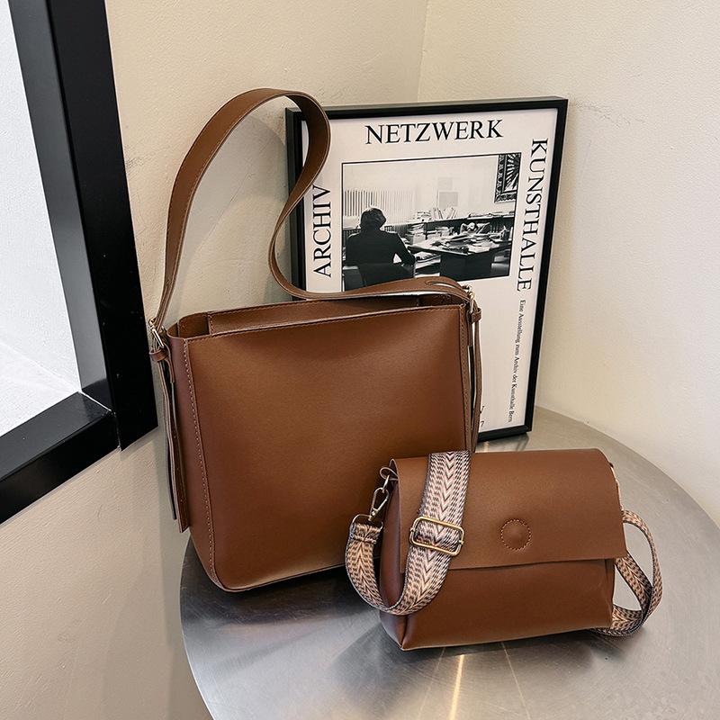 Ретро сумка большой вместимости женская 2024 новая летняя сумка-ведро модная и простая подмышечная сумка с текстурой для матери и ребенка кофейный