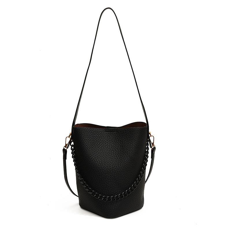 Ретро сумка большой вместимости женская 2024 новая модная корейская сумка-ведро с цепочкой универсальная простая сумка через плечо сумка-тоут 26*18*26 чёрный