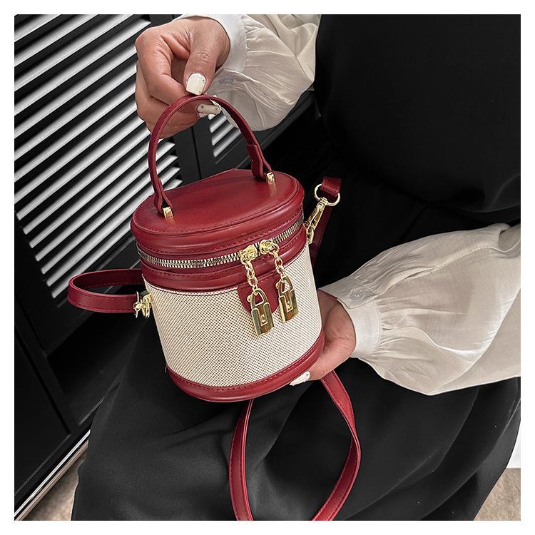 Ретро сумка-ведро для женщин, новая мода, контрастные цветные цилиндрические вечерние сумки, темпераментные сумки через плечо на одно плечо