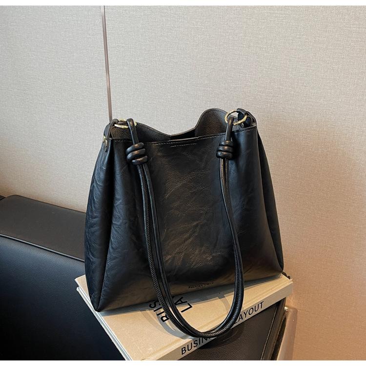 Ретро сумка женская большая вместимость 2024 новая осенне-зимняя универсальная повседневная сумка через плечо сумка-ведро для мамы чёрный