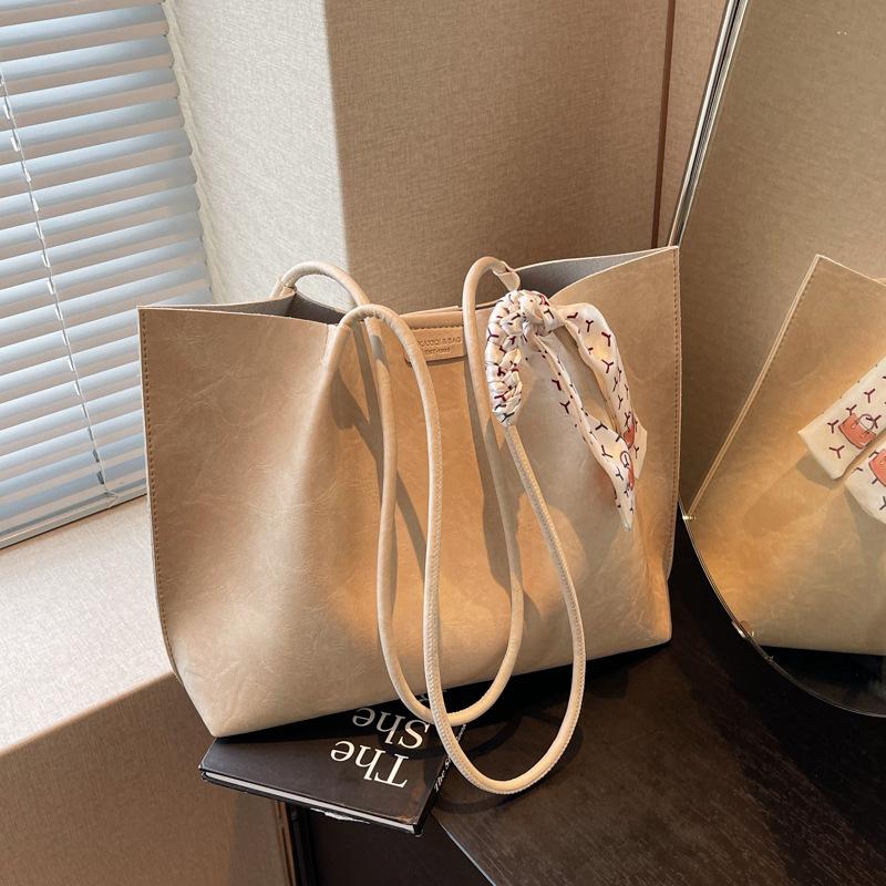 Ретро сумка женская большая вместимость 2024 новая осень и зима универсальная простая сумка через плечо сумка-тоут для поездок на работу бежевый
