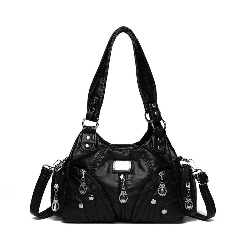 Ретро сумка женская зимняя новая иностранная стиль европейский и американский стиль простой дорожный большой емкости сумка через плечо чёрный