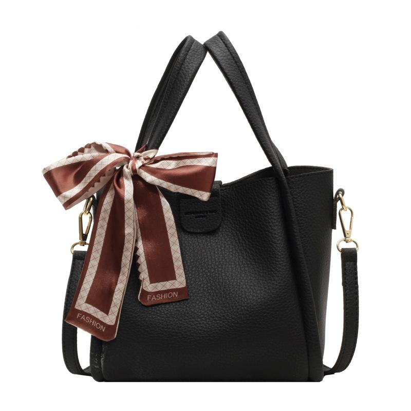 Ретро сумка женская 2024 новая корейская версия модная однотонная сумка большая вместительная сумка через плечо популярная портативная сумка-ведро чёрный