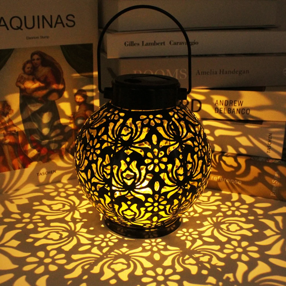 Ретро-фонари на солнечной батарее, уличные садовые подвесные светильники, металлические светильники с рисунком листьев для двора, дорожки, ...