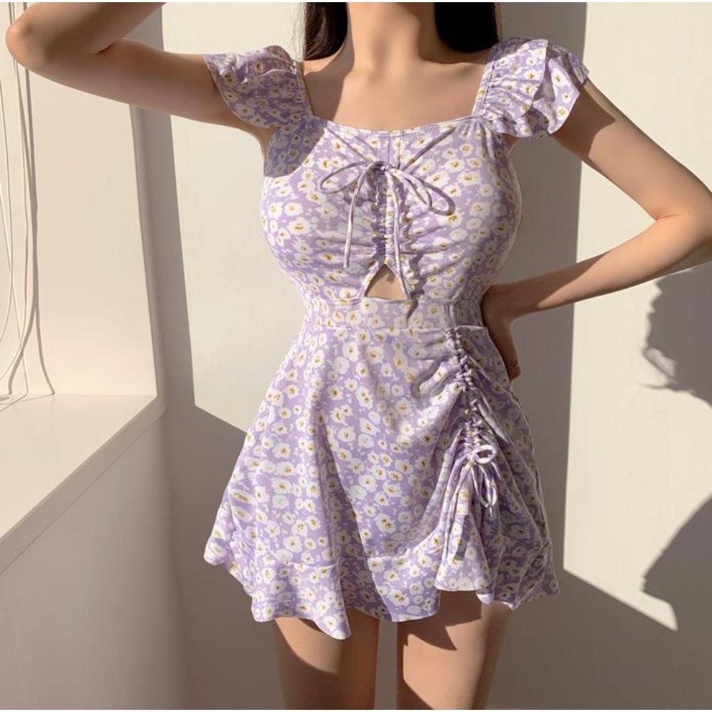 Ретро-цветочный купальник с завязками на рукавах, высокая талия, юбка-боксеры, цельный купальник XXL