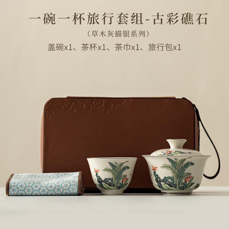 Ретро-чайный набор для путешествий в виде ясеня с нарциссами, серебряная крышка, набор для заваривания чая, походный портативный кожаный мешок