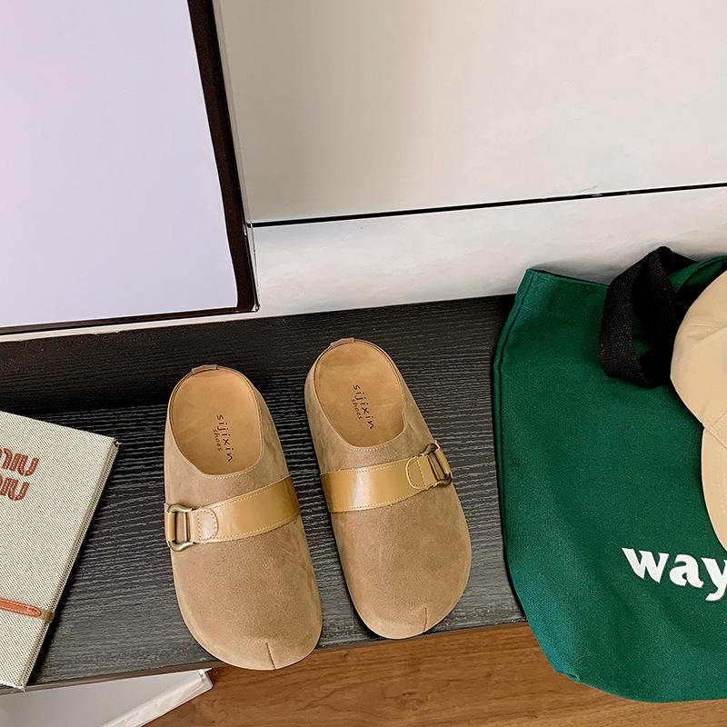 Ретро шлепанцы Boken на толстой подошве для женской верхней одежды 2025 новая осень нескользящие увеличивающие рост с сумкой-юбкой и полушлепанцы прилив 40 хаки