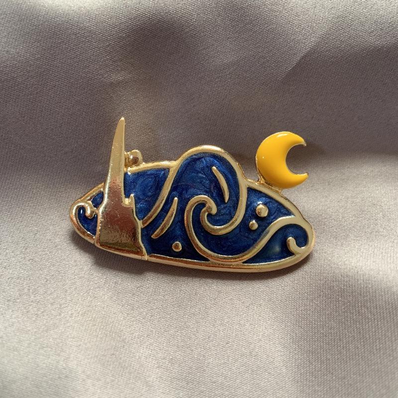Ретро-эмалевая брошь в стиле Ван Гога: Аксессуар для корсажа с бриллиантами в виде абрикосового подсолнуха, солнца и луны