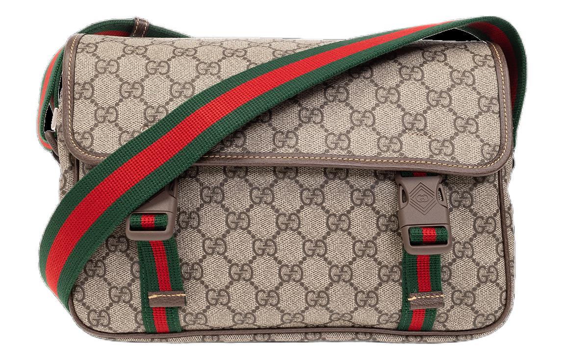 Сумка через плечо из холста с кожаной окантовкой мужская бежевая и черная GUCCI