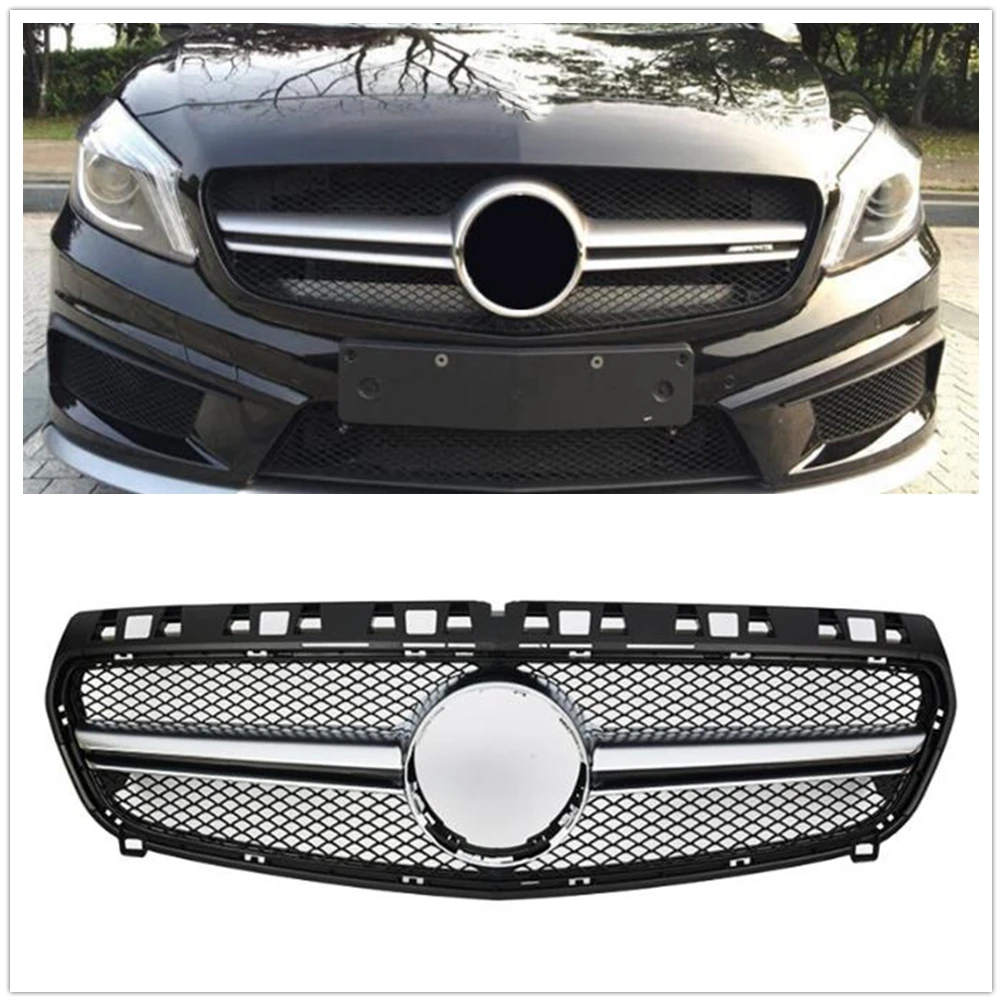 Решетка для Mercedes Benz W176 A Class 2013-2015 A180 A200 A250 A45 AMG Style Серебристая/Черная передняя решетка для автомобильного верхнего бампера
