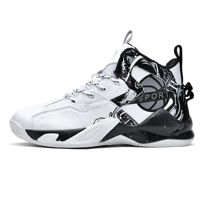 BIANSULONG Износостойкие баскетбольные кроссовки с высоким берцем и флисовой подкладкой унисекс бело-черные, цвет White Black-Fleece-Lined